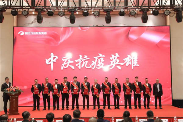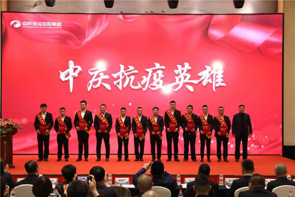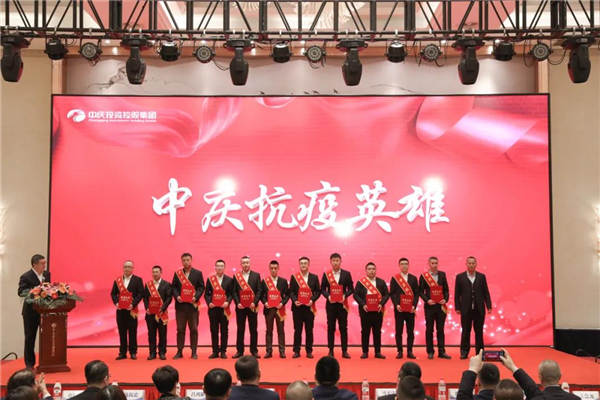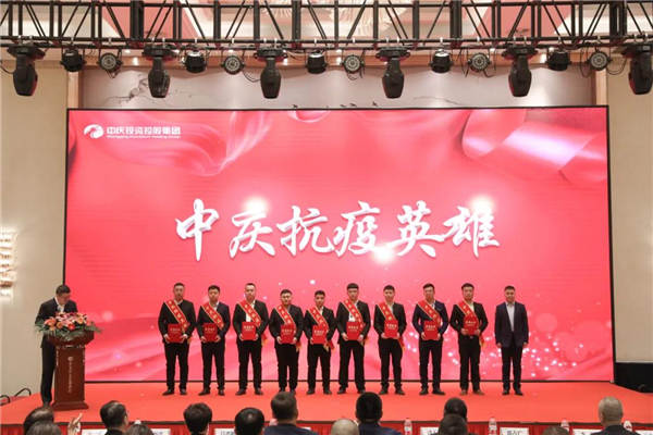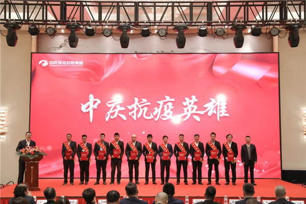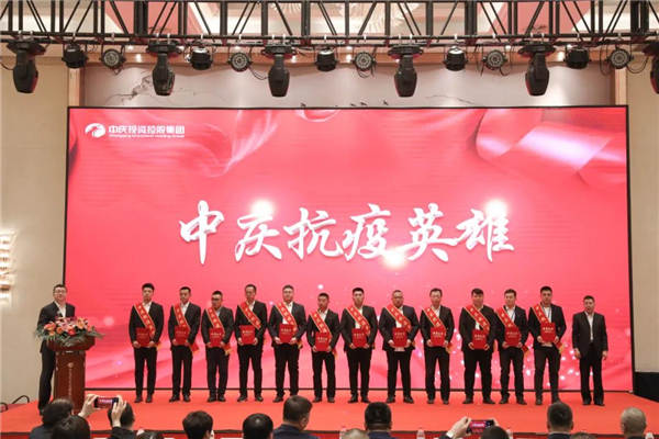 會議首先對2021年參加吉林省通化市、公主嶺市抗疫援建項目的160名中慶鐵軍、十支團隊進行表彰,分別授予“中慶抗疫英雄”“中慶抗疫鐵軍團隊”榮譽稱號,并頒發抗疫英雄獎章、榮譽證書、獎杯,抗疫英雄詮釋著中慶鐵軍精神,激勵著所有中慶人勇于擔當,繼續拼搏。